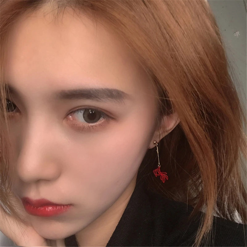Модные простые серьги, полые красные золотые рыбки, Висячие креативные серьги, длинные висячие серьги для женщин и девушек, украшения в подарок