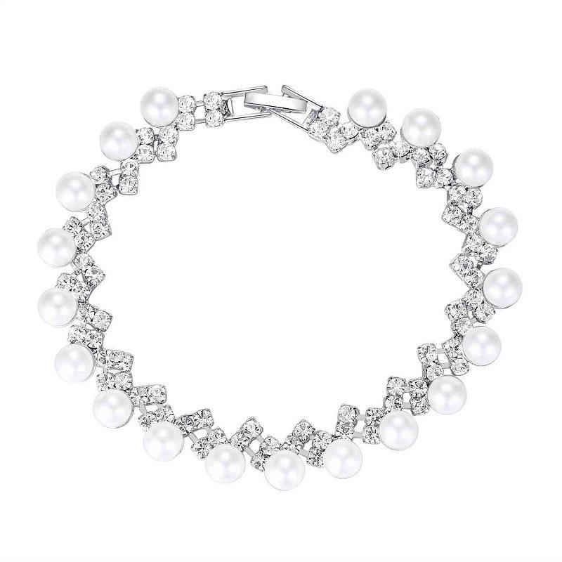 Модные, свадебные аксессуары, элегантный роскошный браслет со стразами и жемчугом