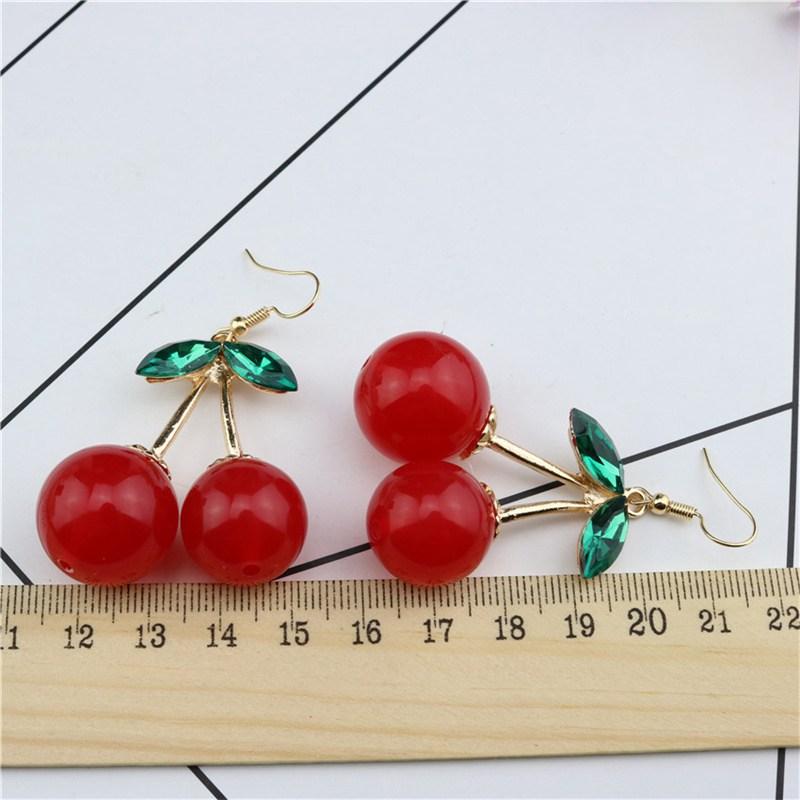 Модные серьги-гвоздики с вишневым фруктом и стразами, серьги-капли с кристаллами 6.5cm*3.5cm