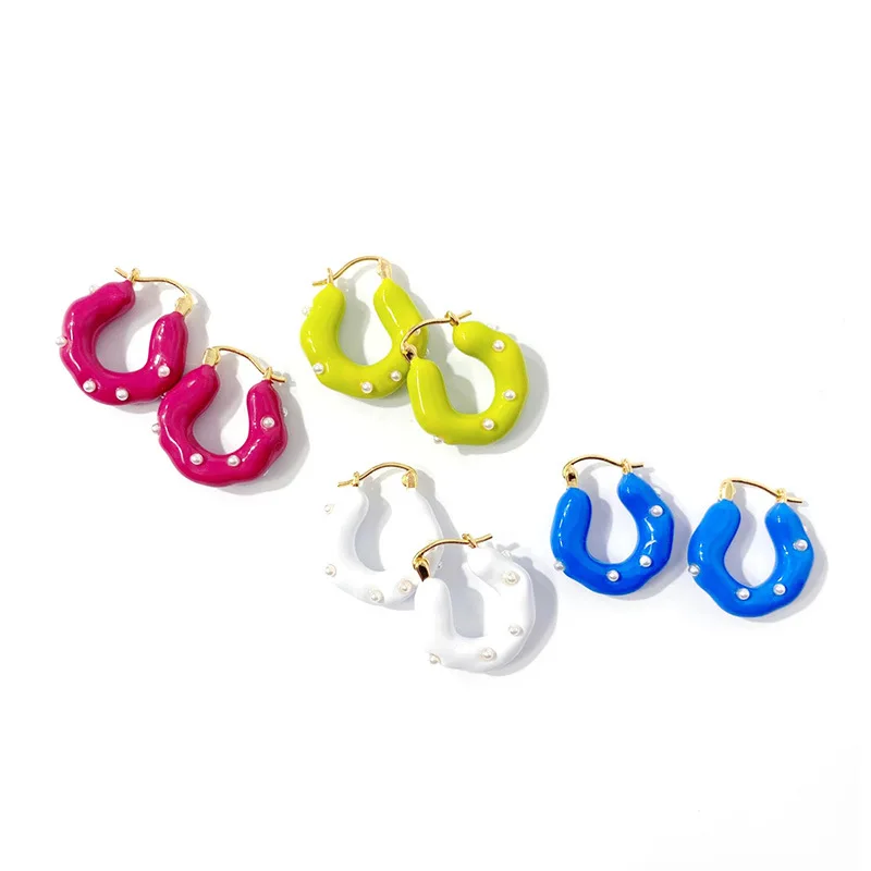 Модные серьги-гвоздики с золотым покрытием, ювелирные изделия, простые элегантные Эмалевые Серьги-капли с маленьким жемчугом, подарки для в...