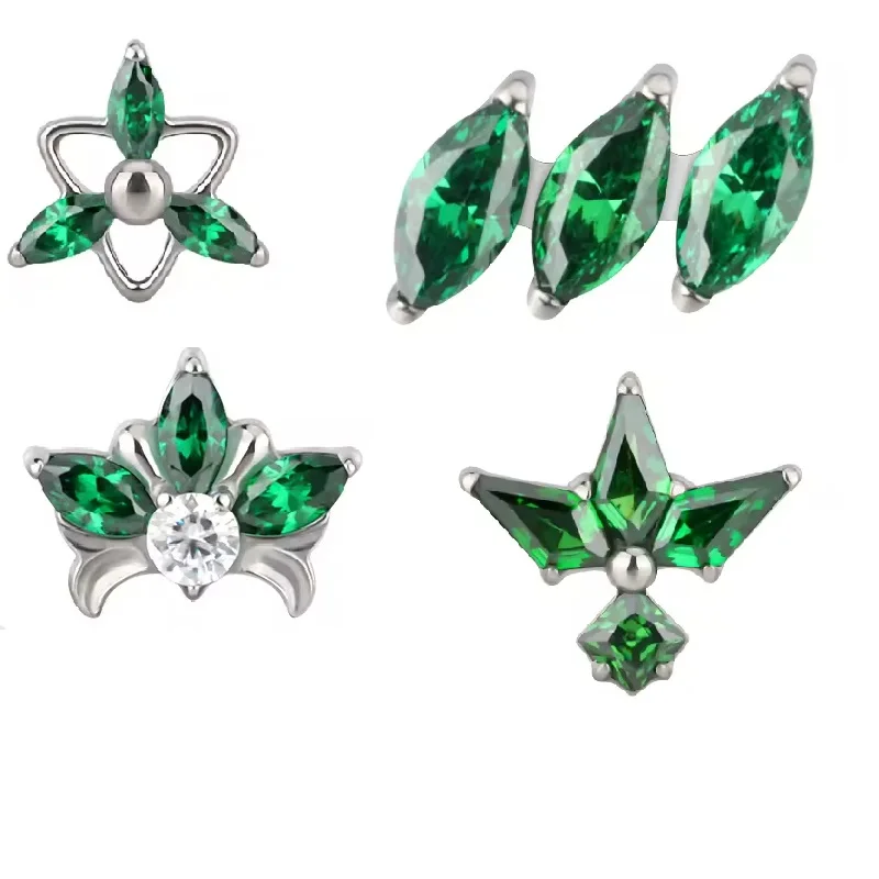 Модные серьги Kenbao с внутренней резьбой, бижутерия для пирсинга носа, губ, зеленый драгоценный камень, топ, украшения для хряща, 10 шт., ASTM F136