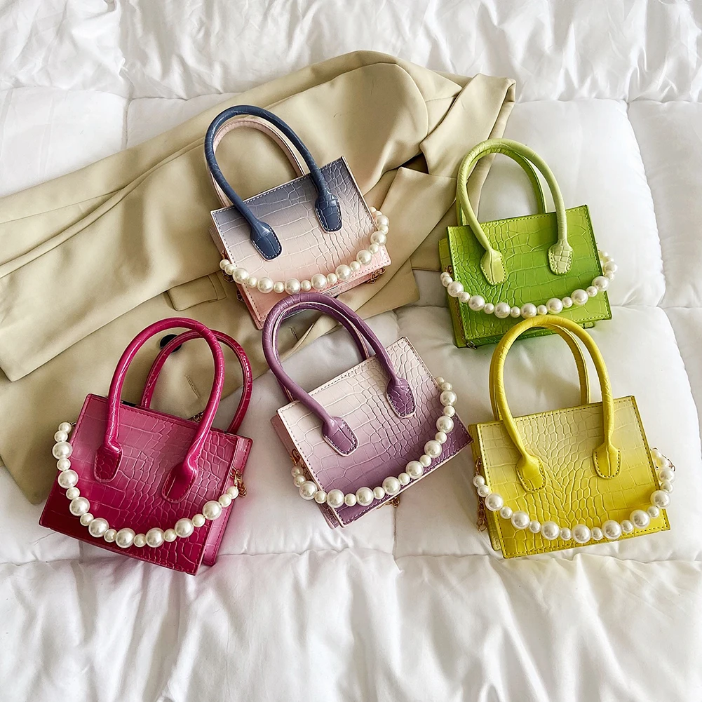 Модные сумки на плечо градиентного цвета с жемчужной цепочкой, женская сумка-мессенджер с узором под кожу аллигатора, повседневная женская ...