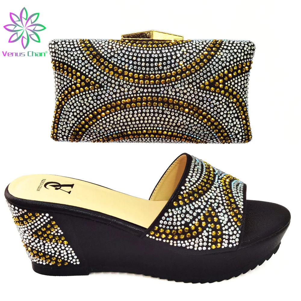 Модные тапочки, сандалии с открытым носком, подходящая сумка, черные удобные туфли на каблуке и платформе для свадебного платья