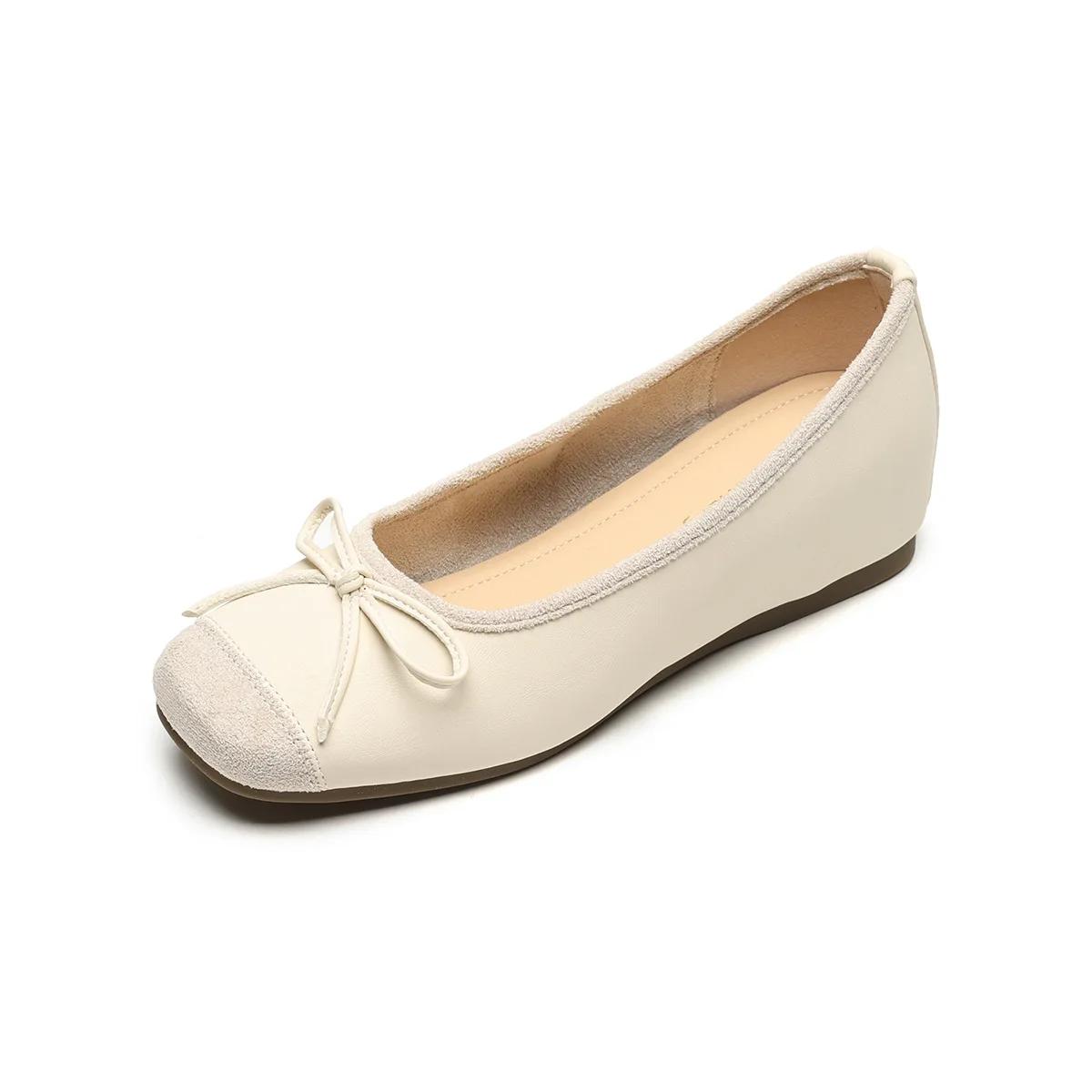 Модные туфли на танкетке для женщин. Тапочки. Плоские туфли с квадратным носком. Женские мокасины. Бантик внутри. Увеличивающая рост женская обувь. 43 абрикосовый