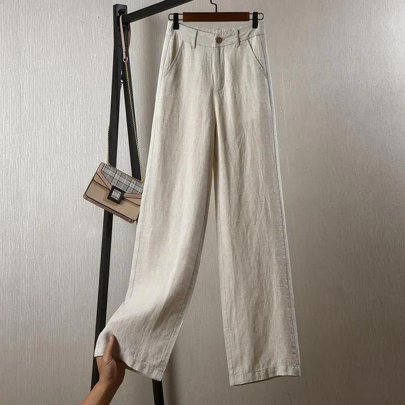 Модные хлопковые льняные брюки женские элегантные с высокой талией белые широкие брюки женские повседневные мешковатые прямые уличные брюки M хаки