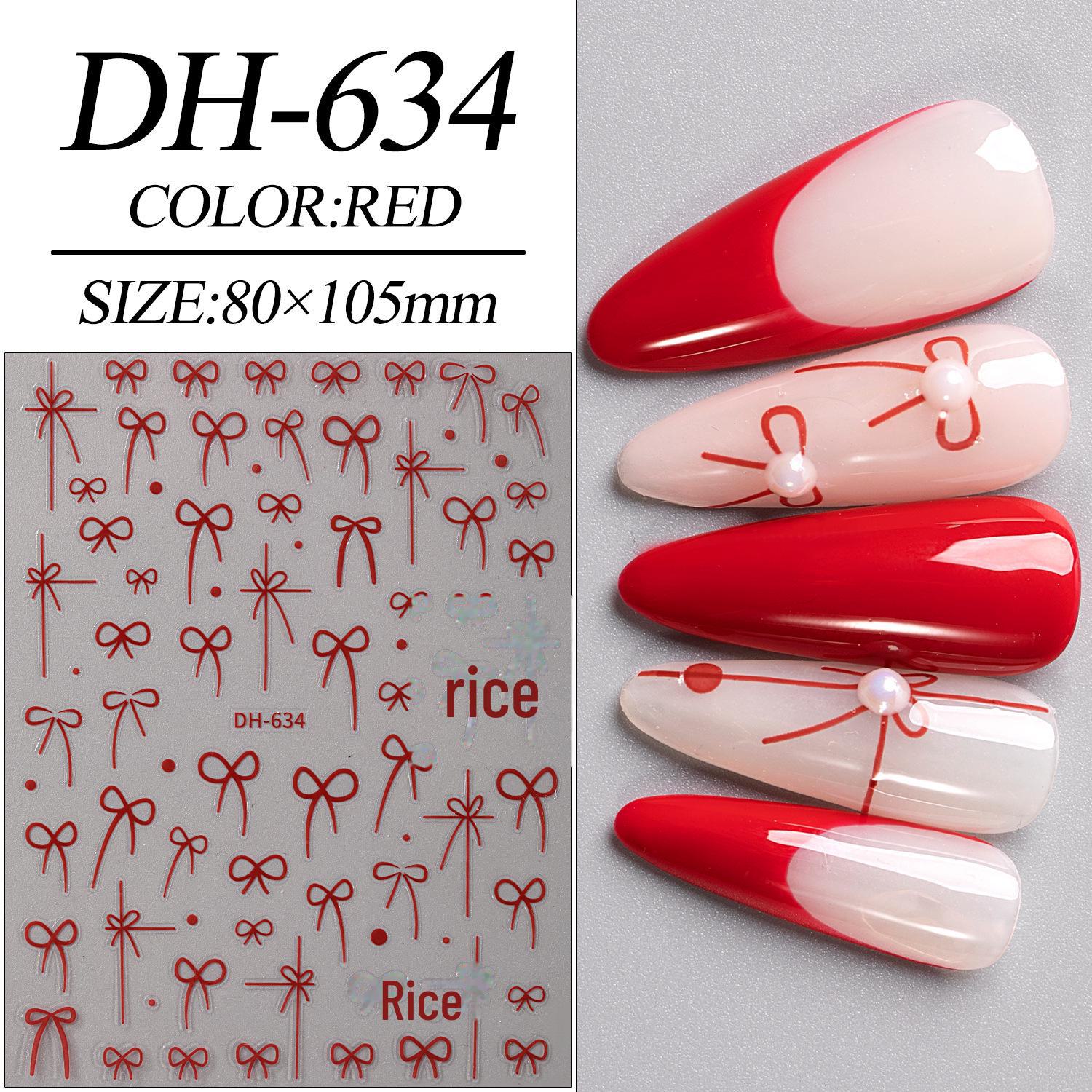 Модные черно-белые наклейки-бантики для ногтей: Новогодние красные, тонкие и прочные наклейки DH-634 красный