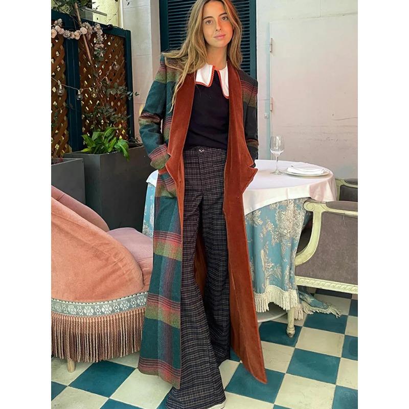 Модные шерстяные пальто с цветным клетчатым принтом для женщин, лоскутное шитье, отложной воротник, облегающие длинные пальто, высокая уличная одежда S оранжевый