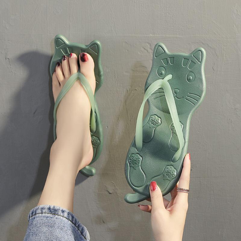 Модные шлепанцы женские дизайнерские летние пляжные женские в форме кошки для девочек милые нескользящие сандалии на толстом каблуке симпатичные уличные тапочки для ванной 36-37(23.5CM) зелёный