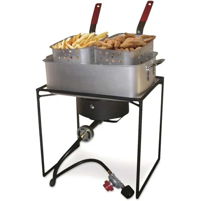 Kooker 1618 16-дюймовая пропановая уличная плита с алюминиевой сковородой и 2 корзинами для жарки, многоцветная