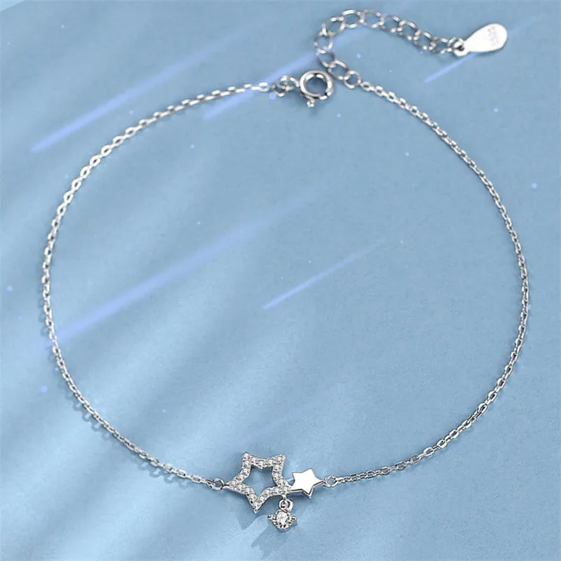 Модные 925 стерлингового серебра с украшением в виде кристаллов звезда браслет, браслет на запястье для женщин девочек-гостей на свадьбе юве...