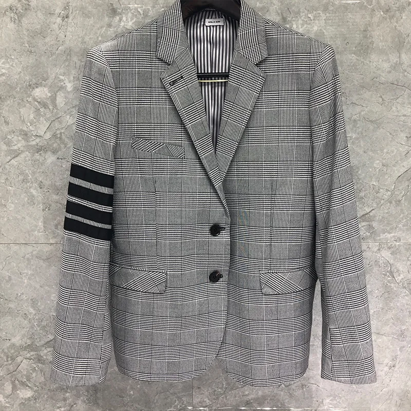 Модный брендовый 2021 блейзер мужская одежда серый клетчатый официальный костюм приталенный повседневный жакет однобортный шерстяной зимни...