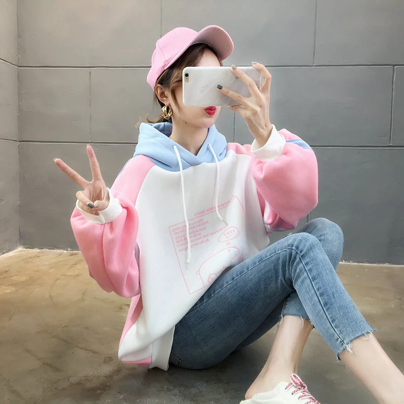 Модный вязаный женский свитер с капюшоном и принтом, осенне-зимние свободные пуловеры, Женский Повседневный теплый свитер с длинным рукаво...