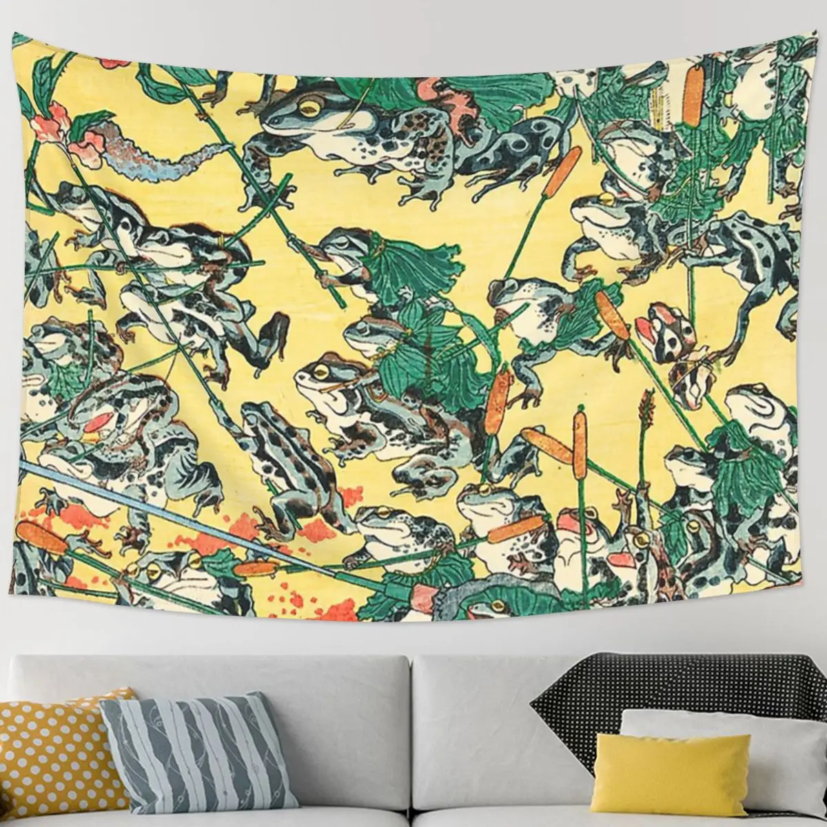 Модный гобелен с надписью «Битва за лягушек» от Kawanabe Kyosai, настенный Декор для дома, гобелены для гостиной, спальни, спальни