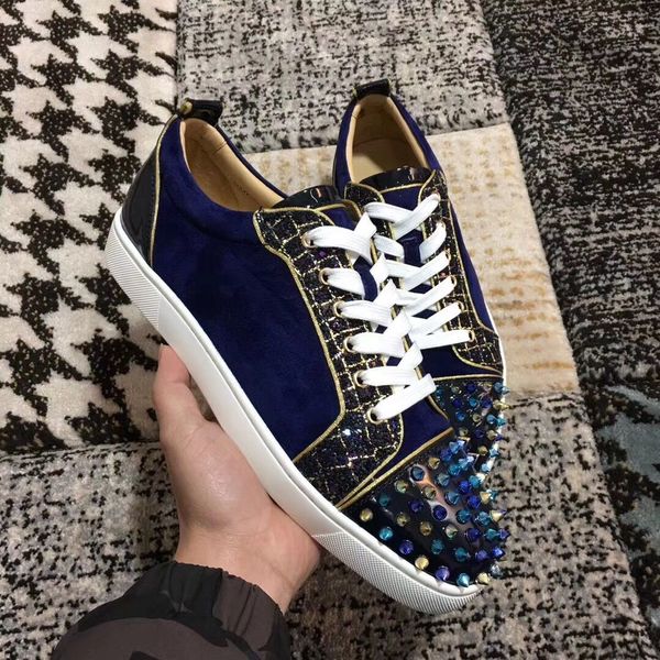 Модный дизайнер бренд шипованных Шипы квартиры низкий верхний красный дно обувь для мужчин и женщин партии замши кожаные кроссовки