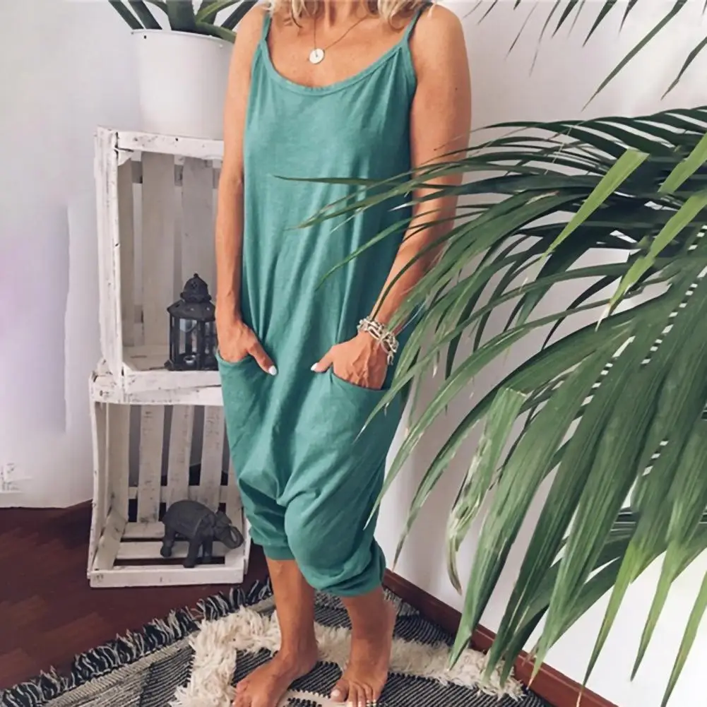 Модный женский комбинезон с двумя карманами, однотонный женский комбинезон, женские брюки, длинный комбинезон, брюки