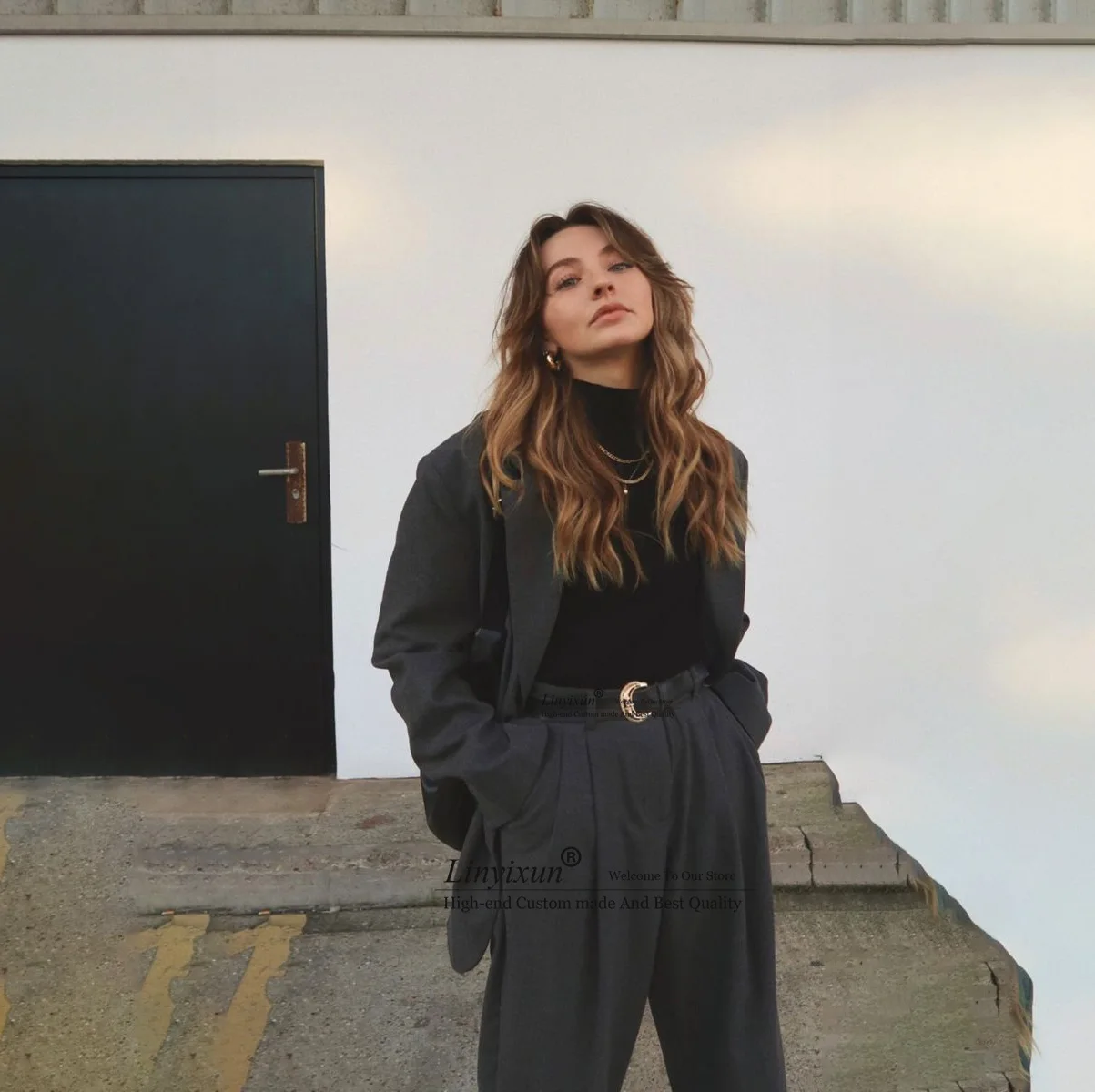 Модный женский костюм, брюки, элегантный пиджак, одежда, пальто + прямые брюки
