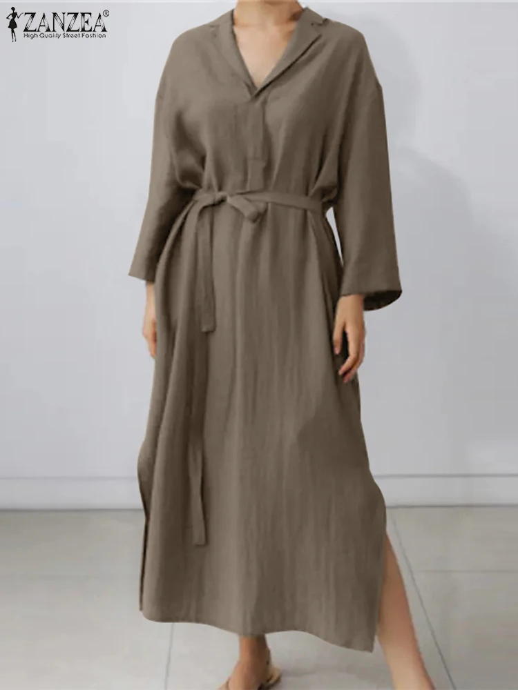 Модный женский сарафан ZANZEA, осеннее платье-рубашка, женское Повседневное платье с V-образным вырезом и длинным рукавом, свободное платье с р...