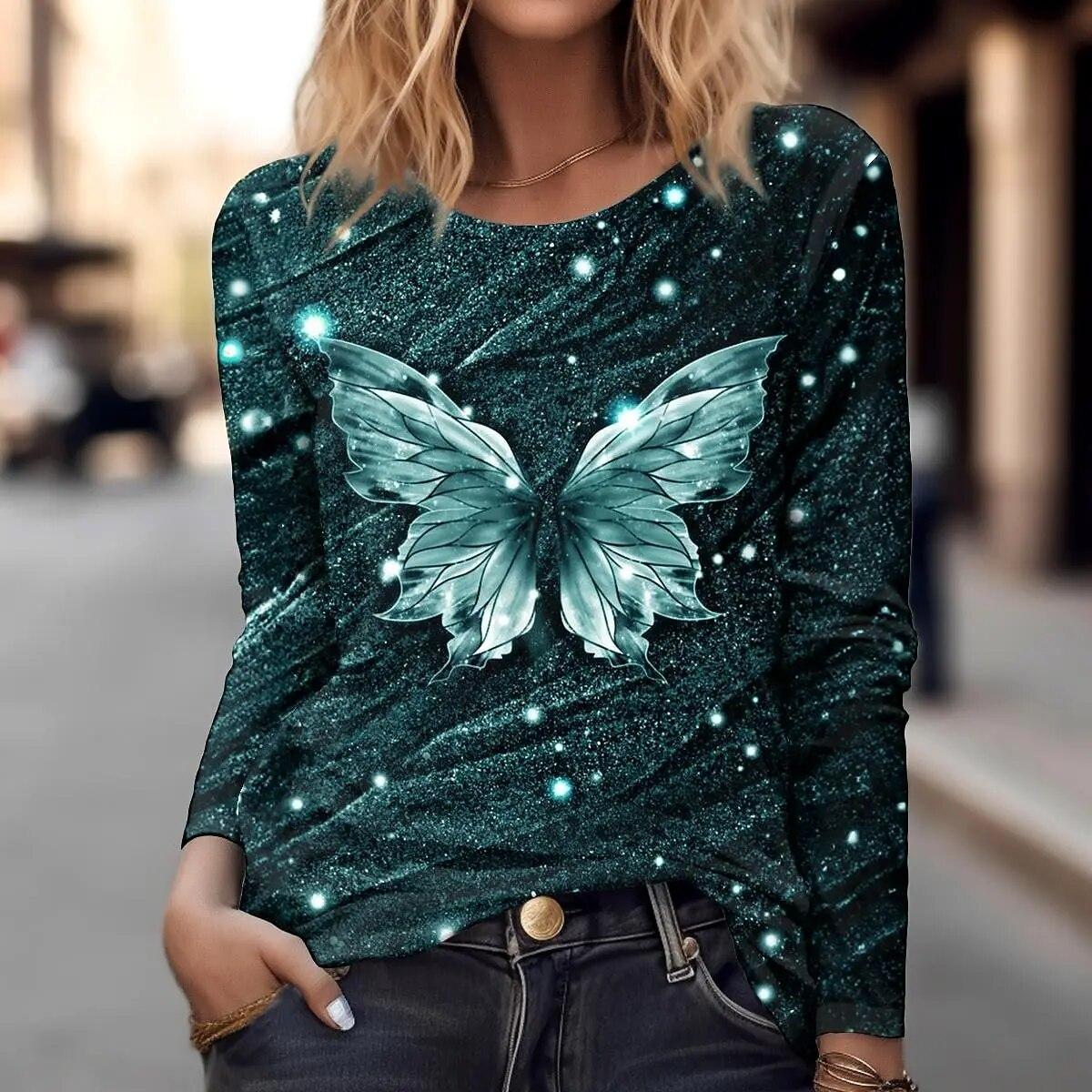 Модный женский свитер с принтом бабочки, свободная футболка с круглым вырезом и длинными рукавами, имитация хлопка, осенний пуловер, уличная одежда M