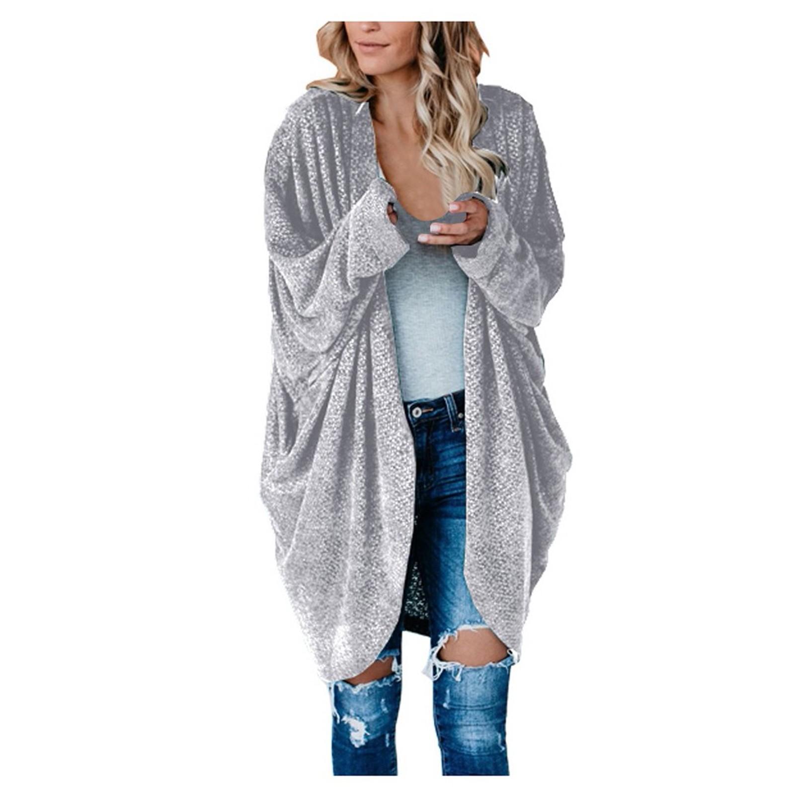 Модный женский сплошной цвет с длинным рукавом и открытым передом, длинный кардиган, верхняя одежда S