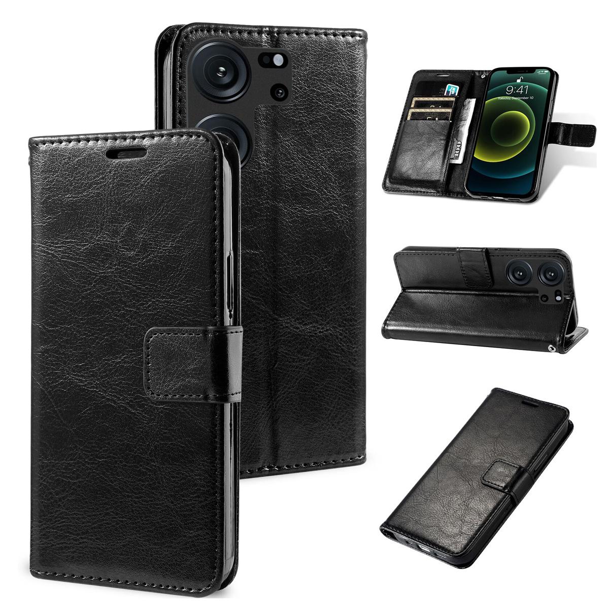 Модный кожаный чехол для телефона с откидным бумажником-книгой, откидной чехол для телефона, чехол с слотом для карт для XIAOMI 13T/13T Pro/13/13 Lite 13lite 5G XiaoMi 13 чёрный