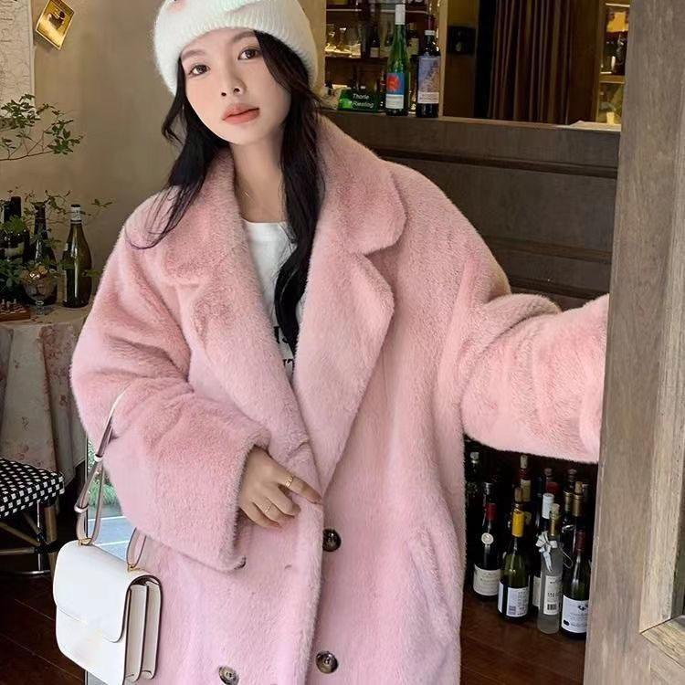 Модный осенне-зимний толстый костюмный воротник из искусственного меха, цельный мех, экологически чистые меха, длинное пальто, женская куртка, зимняя одежда XS розовый