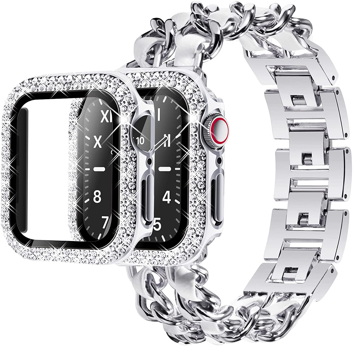 Модный ремешок в корпусе с бриллиантами для Apple Watch Band 40 мм, 41 мм, 38 мм, 44 мм, 45 мм, 42 мм, 40 мм, металлический ремешок для часов, браслет с кубинскими звеньями, IWatch Serie 8, 9, 3, 5, 6 Se 7 41mm