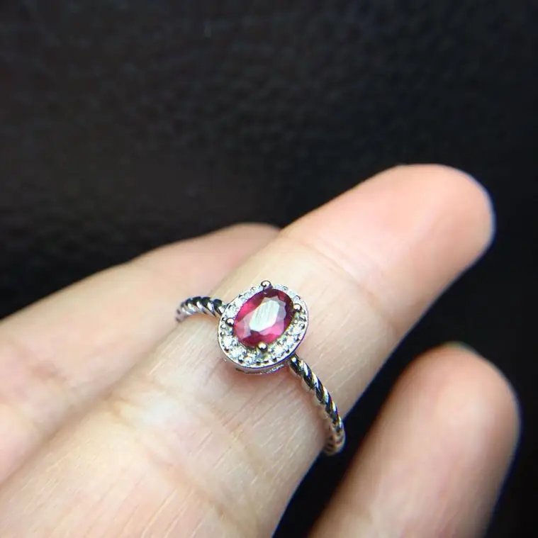 Модный рубин кольцо Бесплатная доставка россыпи натуральных и настоящим Рубином, 925 серебро ювелирные украшения 4*6 мм