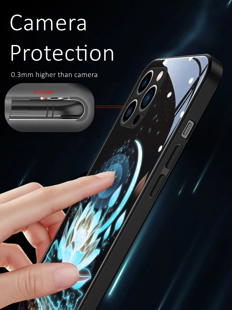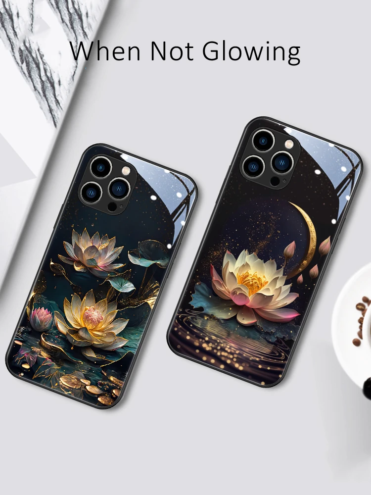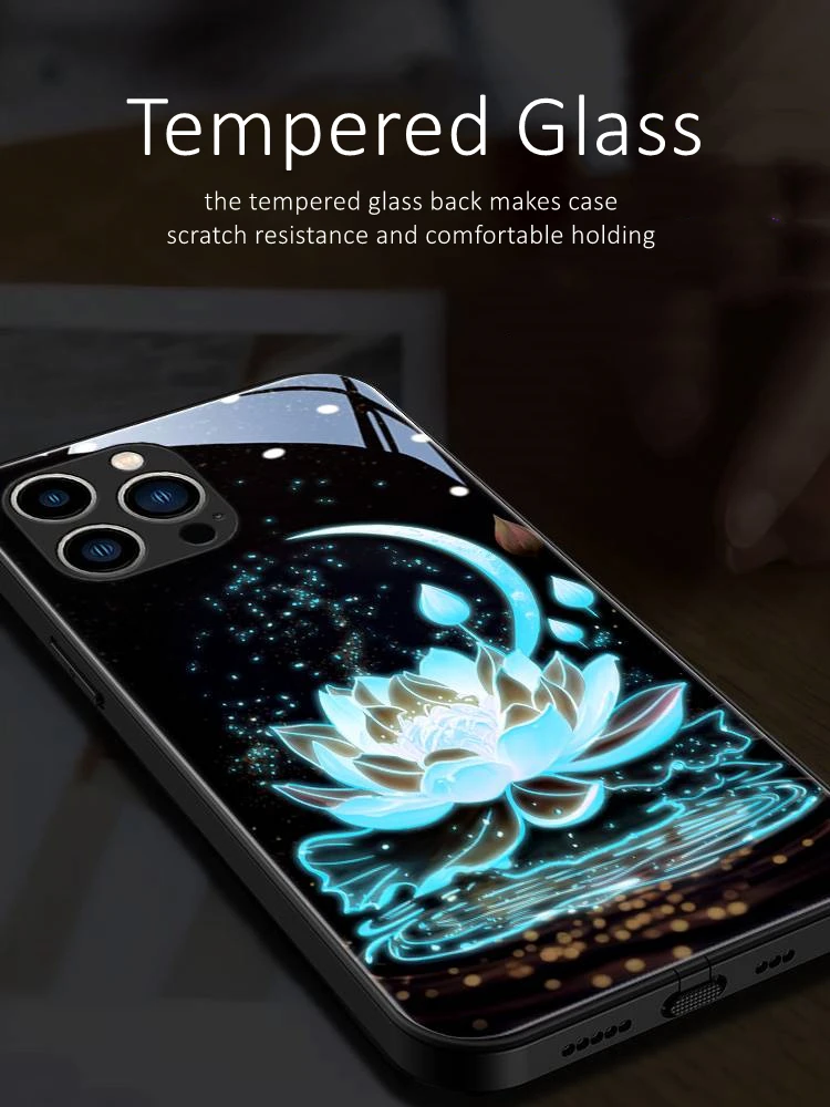 Модный светодиодный светящийся задний Чехол Lotus из закаленного стекла для iPhone 11 12 13 14 15 X Xs Xr Mini Pro Max Plus