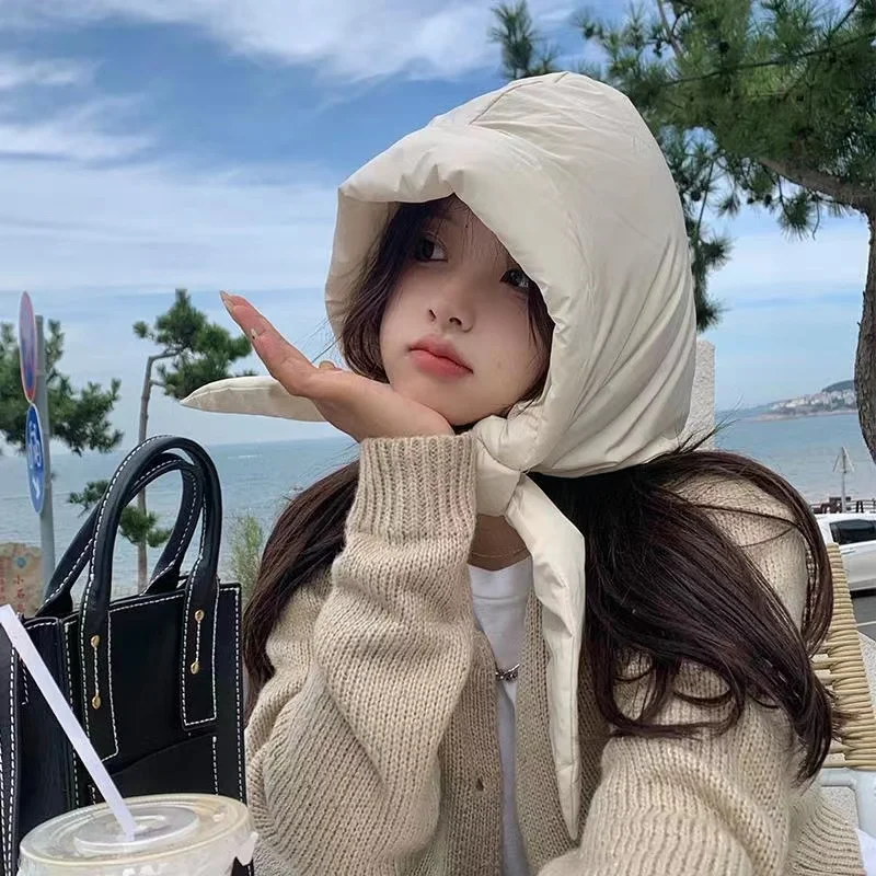 Модный стеганый головной платок, зимний меховой шарф, теплый женский шарф с капюшоном, пышный ветрозащитный платок, шарф с капюшоном, зимняя...