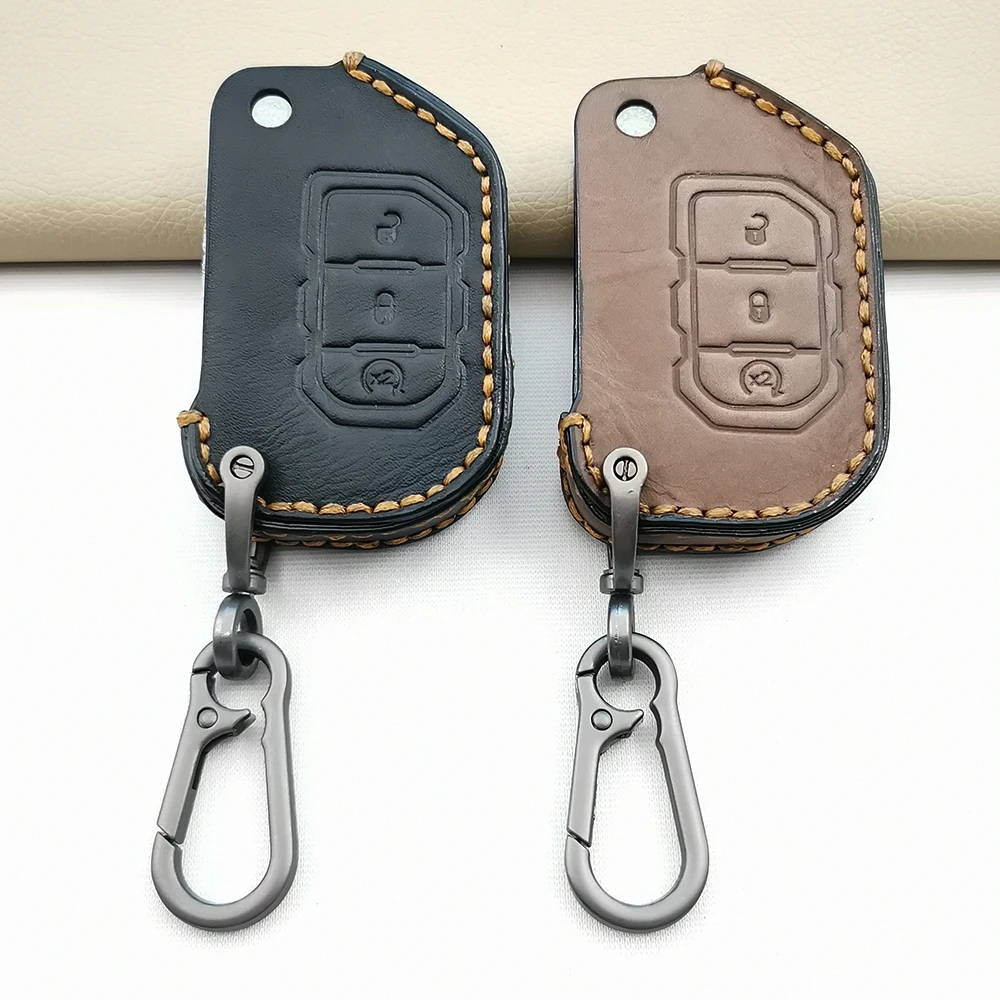 Модный стильный кожаный чехол для автомобильных ключей Crazy Horse для Jeep Wrangler JL 2022-2018 Гладиатор JT с 3 кнопками и полной защитой, 2021