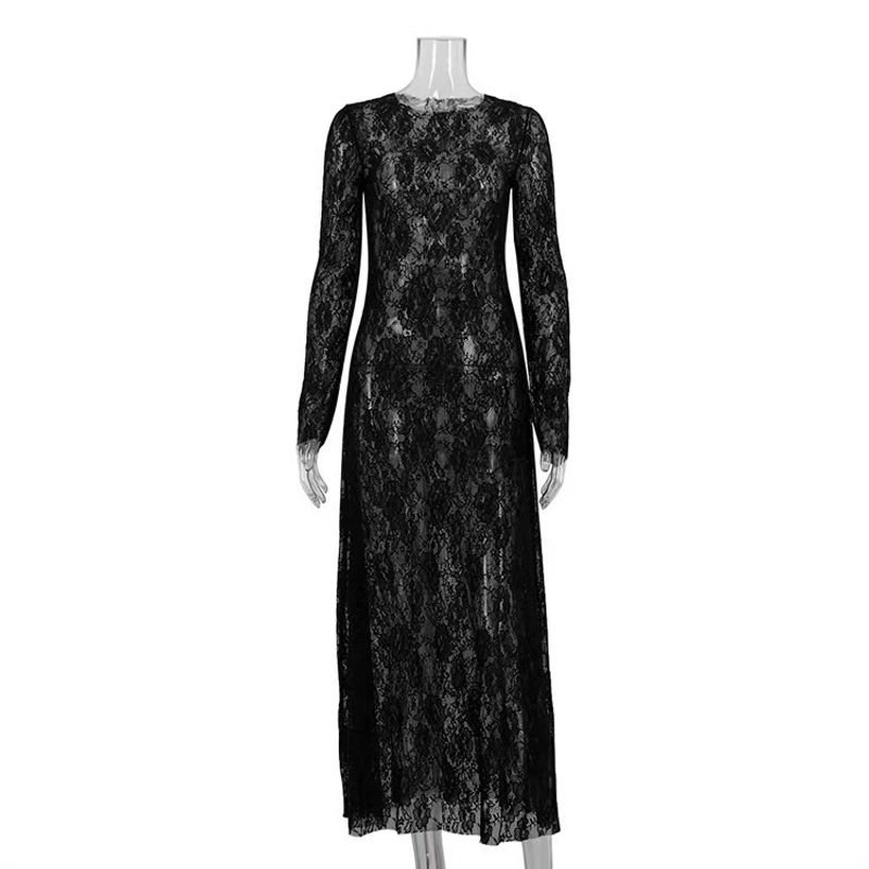Модный стиль Сексуальное Сексуальное Прозрачное Платье с Кружевом и Круглым Вырезом, Сексуальное Перспективное Кружевное Платье Black S