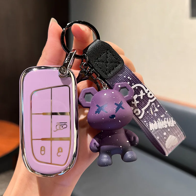 Модный чехол для автомобильного ключа из ТПУ, ФОБ для Jeep Renegade Compass Grand Cherokee для Chrysler 300C Wrangler Dodge, брелок с 3 кнопками