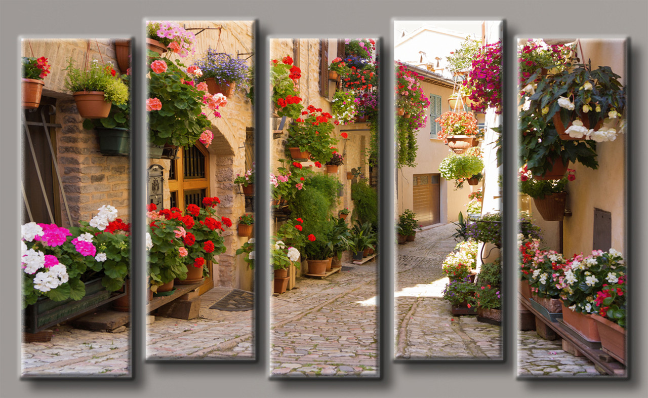 Модульная картина на холсте Holst Art из 5-ти частей Улица в цветах 120х203 см