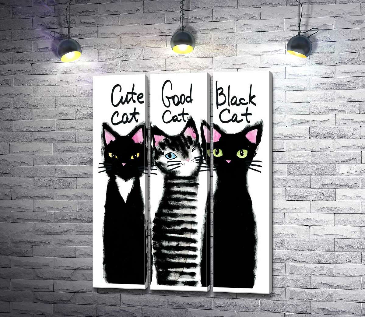 Модульная картина ArtPoster Изящные силуэты трех черных котов 102x136 см Модуль №11