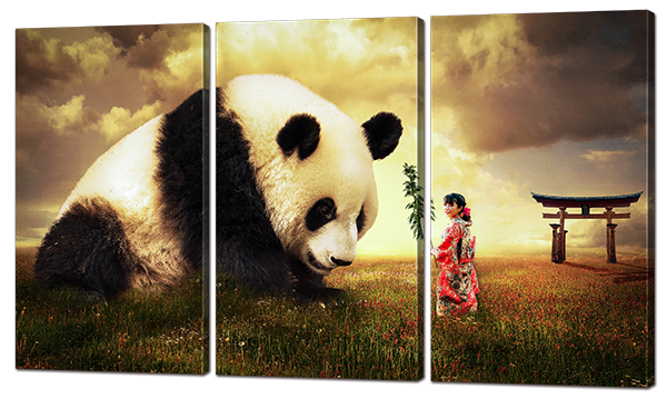 Модульная картина Interno Холст Девочка и панда 104х58см