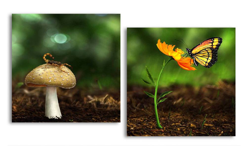 Модульная картина LaPrint Бабочка на грибе 200х109 см