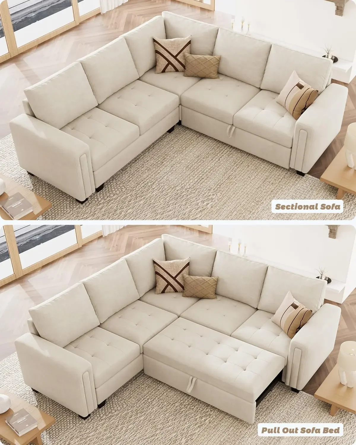 Модульный секционный диван-трансформер, бархатный L-образный секционный диван для квартиры, бежевый цвет