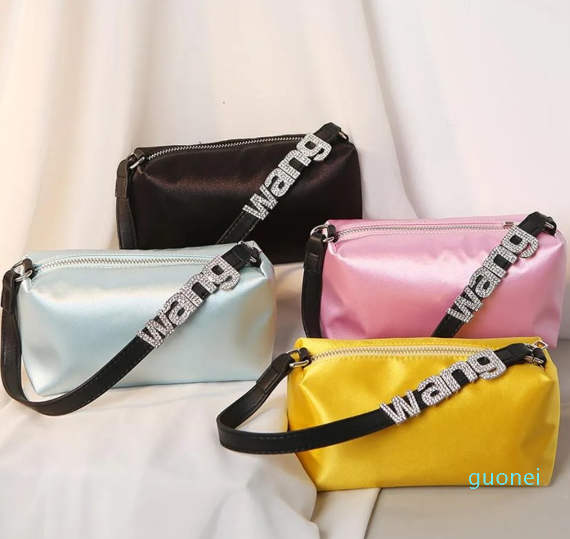 Totes Evening Bag Letter Rhinestone Summer Silk Satin Portable Small Square Korean Version Underarm Women's 2023, Pink