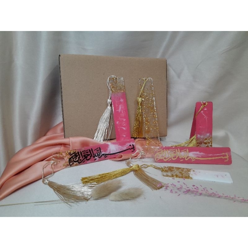 Bookmark resin - resin pembatas buku - resin pembatas Al-Quran - Resin bookmark Al-Quran - tema Bismillah dan abstrak - gift wisuda ulang tahun