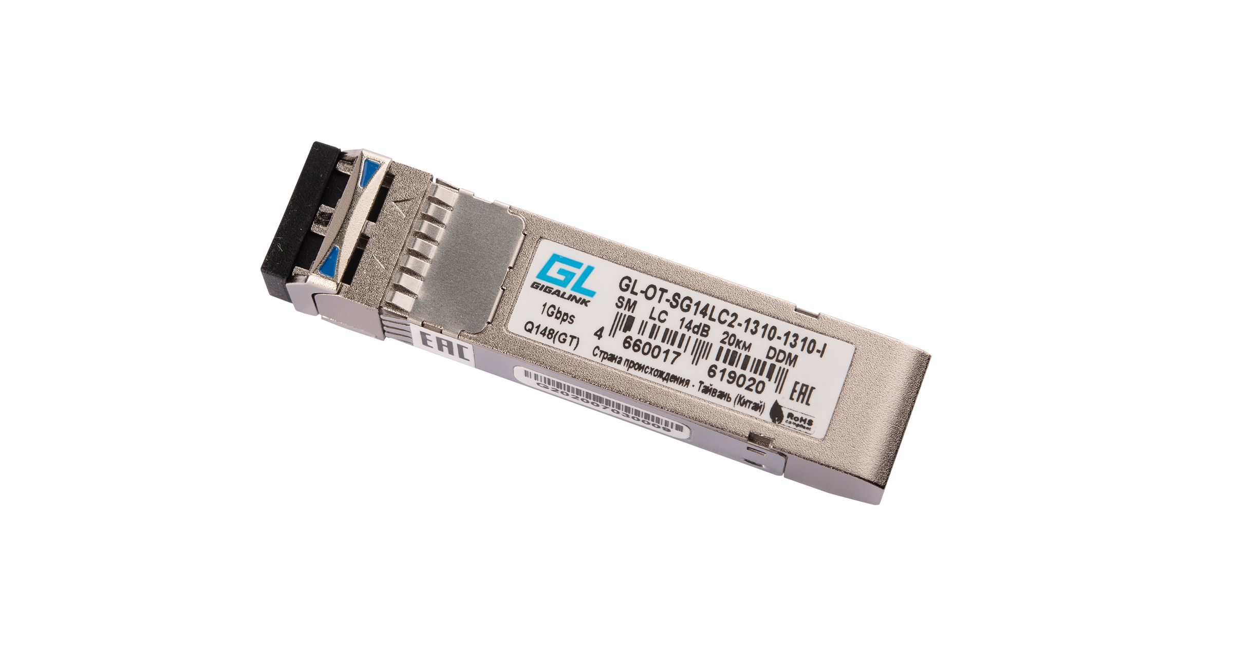 Модуль SFP Nikomax (Gigalink), 20 км, LC, Tx:1310 нм, Rx:1310 нм, 1 Гбит/с, SM, двойной, DDM (GL-OT-SG14LC2-1310-1310-I), Серебристый