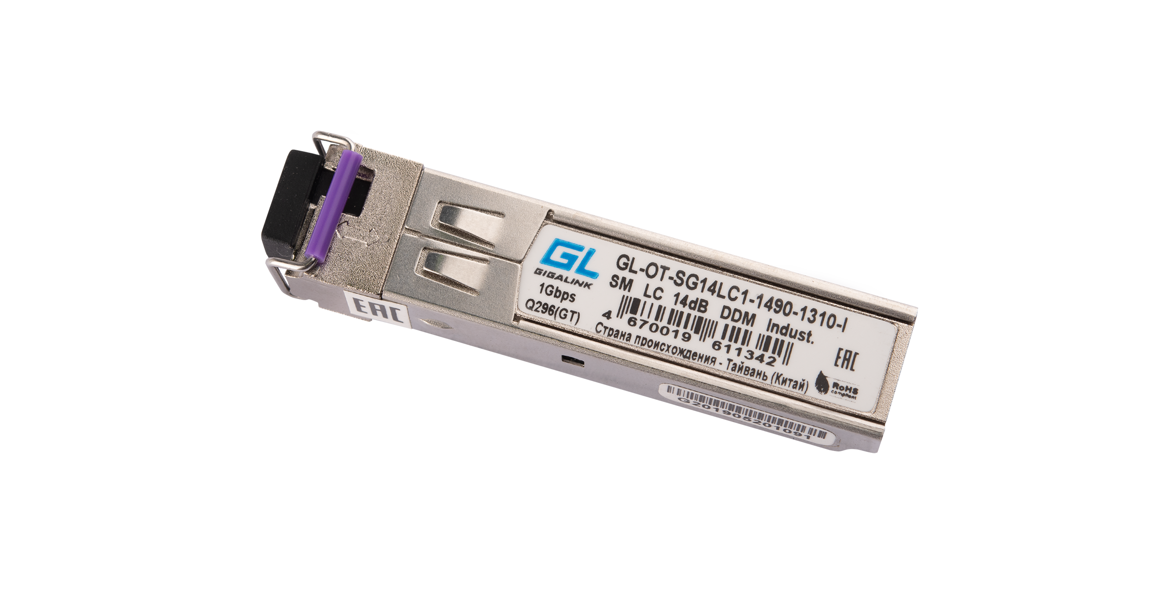 Модуль SFP Nikomax (Gigalink), 20 км, LC, Tx:1490 нм, Rx:1310 нм, 1.25 Гбит/с, SM, одинарный, WDM (GL-OT-SG14LC1-1490-1310-I)
