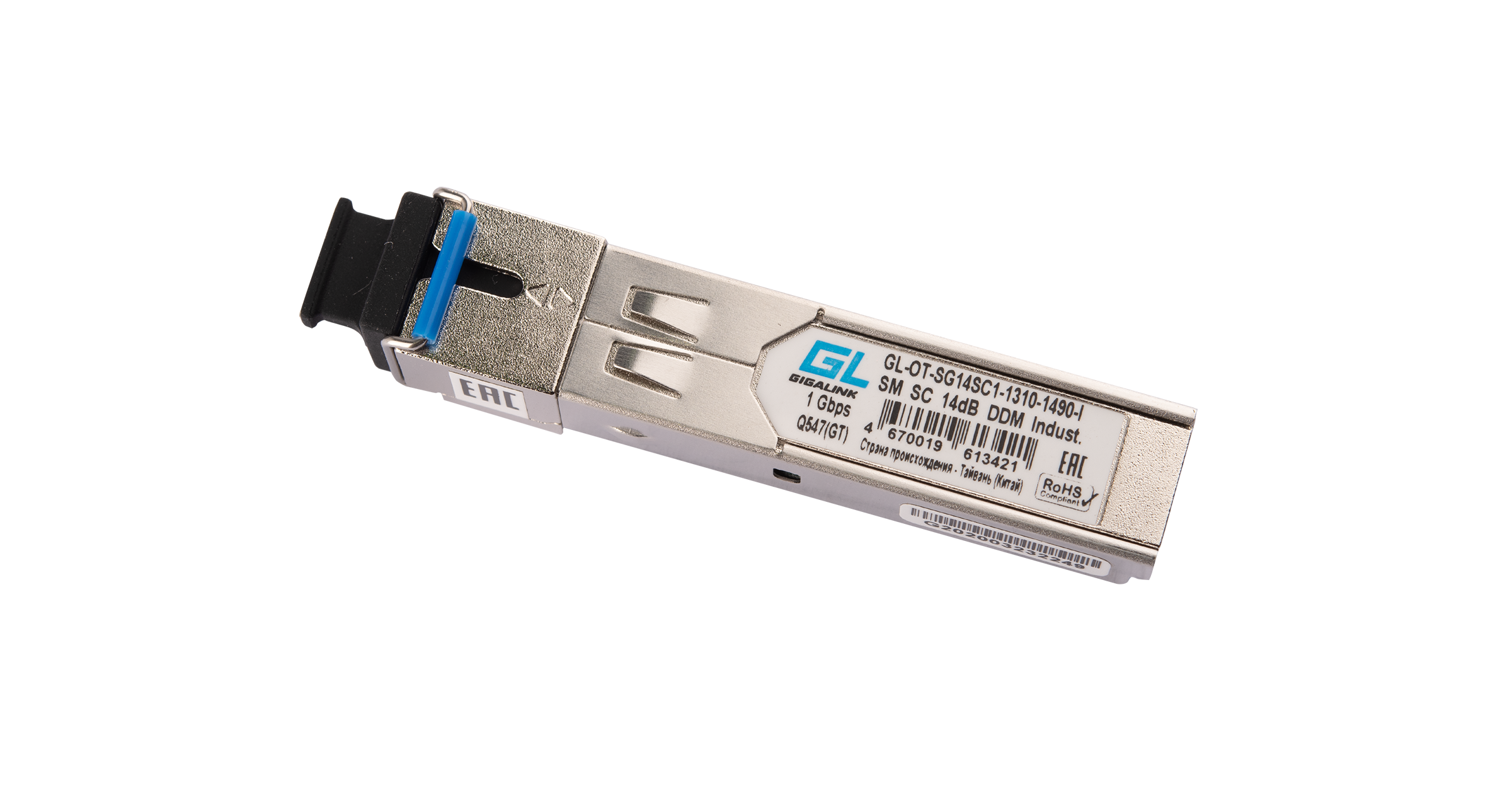 Модуль SFP Nikomax (Gigalink), 20 км, SC, Tx:1310 нм, Rx:1490 нм, 1.25 Гбит/с, SM, одинарный, WDM, DDM (GL-OT-SG14SC1-1310-1490-I)