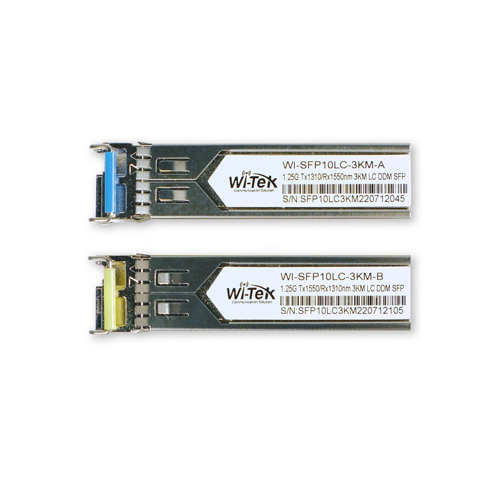 Модуль SFP Wi-Tek WI-SFP10LC-3KM, 3 км, LC, Tx:1310 нм, Rx:1550 нм, 1 Гбит/с, SM, одинарный, WDM, DDM, 2 шт, WI-SFP10LC-3KM