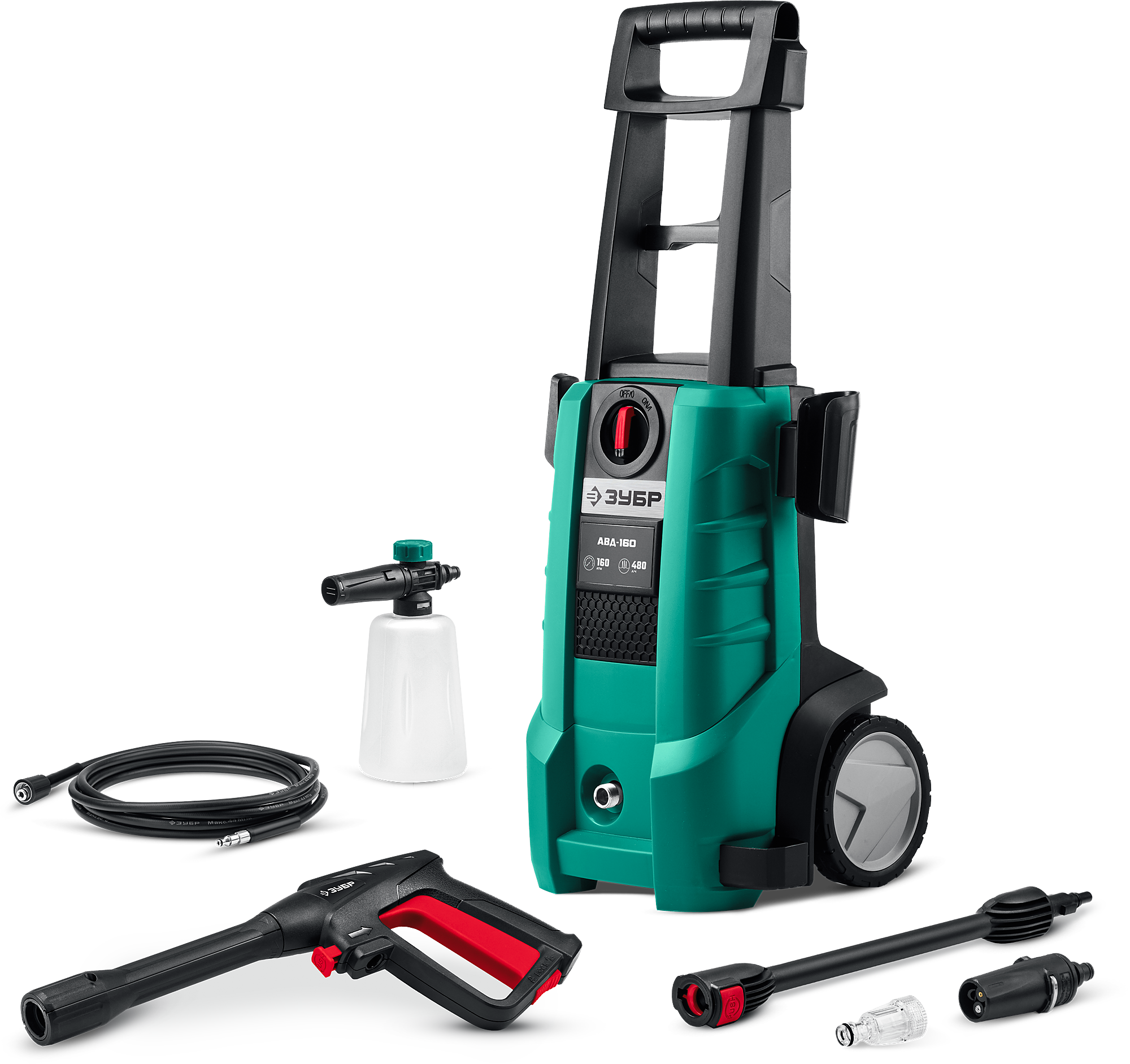 Мойка высокого давления ЗУБР АВД-160, 158 атм, 480 л/ч, шланг 5 м, сетевой шнур 5 м, корпус насоса алюминий, 8.8 кг (АВД-160), АВД-160