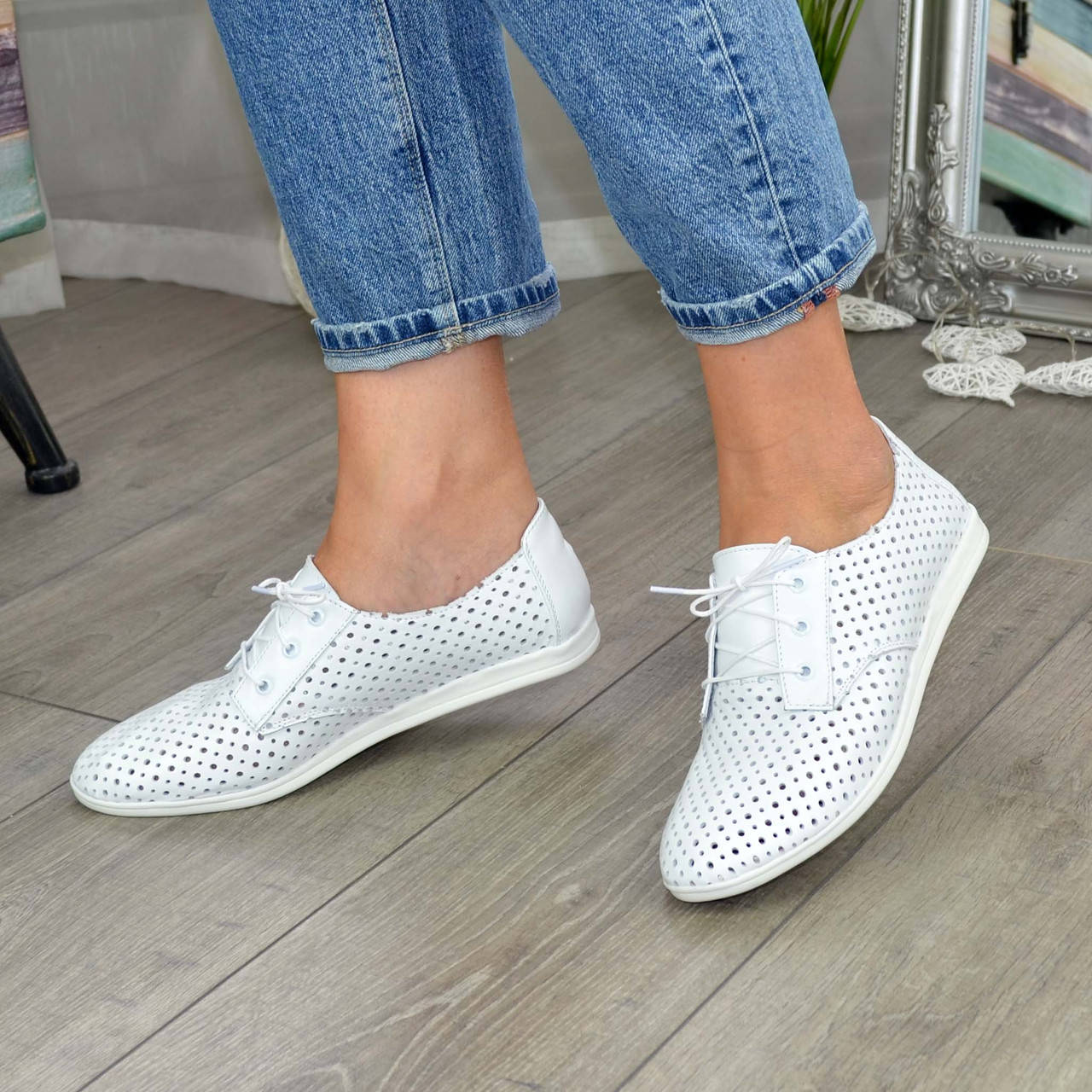 Мокасины женские белые кожаные, сквозная перфорация. В наличии, Белый