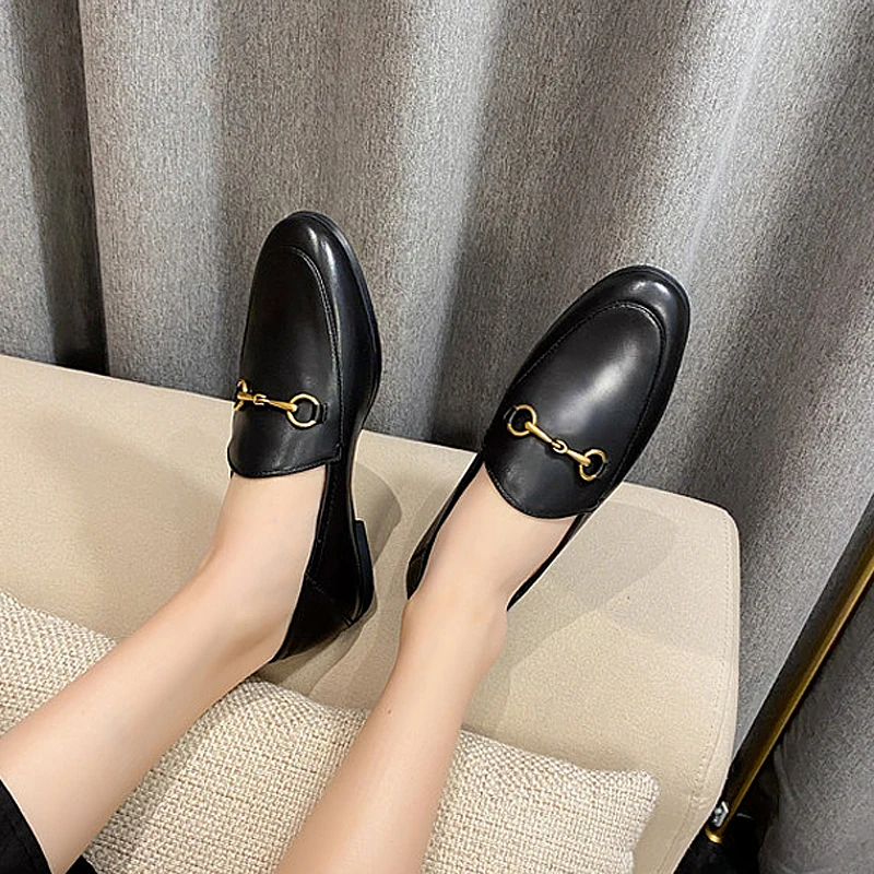 Мокасины женские из натуральной кожи, туфли с круглым носком, без застежки, плоская подошва, повседневная обувь