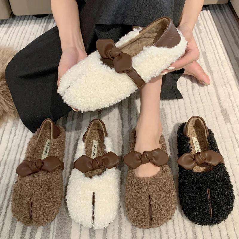 Мокасины женские с круглым носком, мягкие туфли с мехом, повседневные кроссовки, универсальные, с бантом, на осень