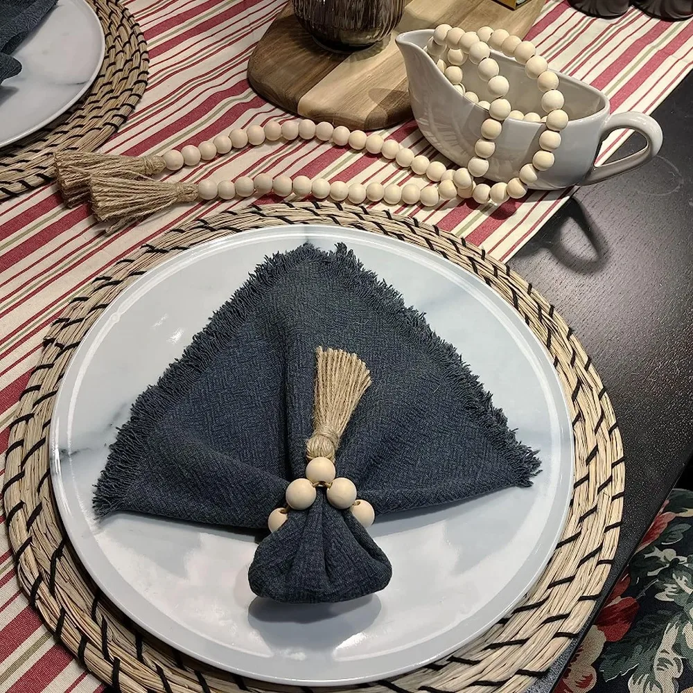 Молитвенные деревянные бусины, деревянная кисточка, кольцо для салфеток в стиле фермерского бохо, многоразовый деревянный кулон, прочные бусины, эластичные кольца для салфеток