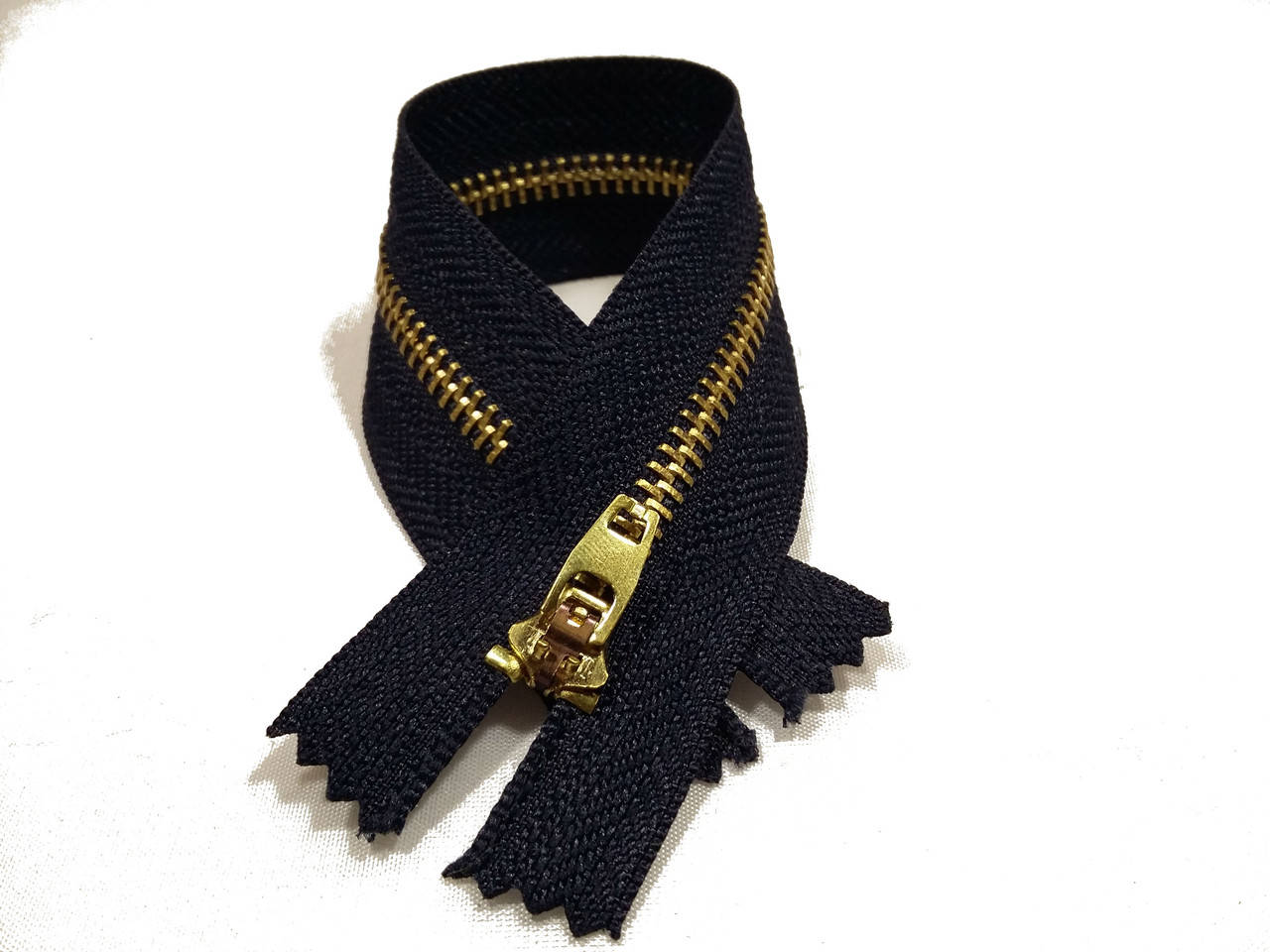 Молния джинсовая 18см темно синяя (зубцы желтые)