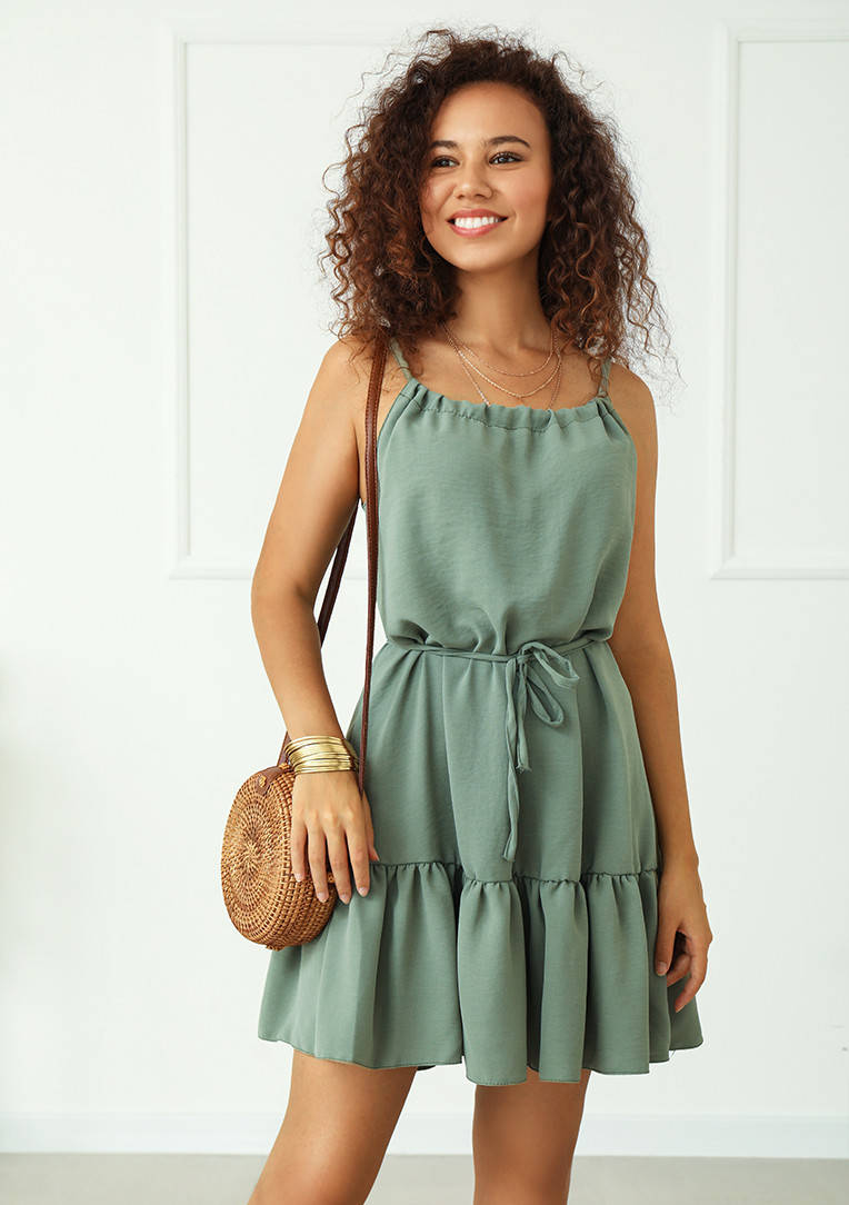 Молодежный сарафан на тонких бретельках имеет красивую оборочку, которая придает наряду нотки игривого настроения. Съемным пояском можно удачно подчеркнуть талию, сделав силуэт более женственным.